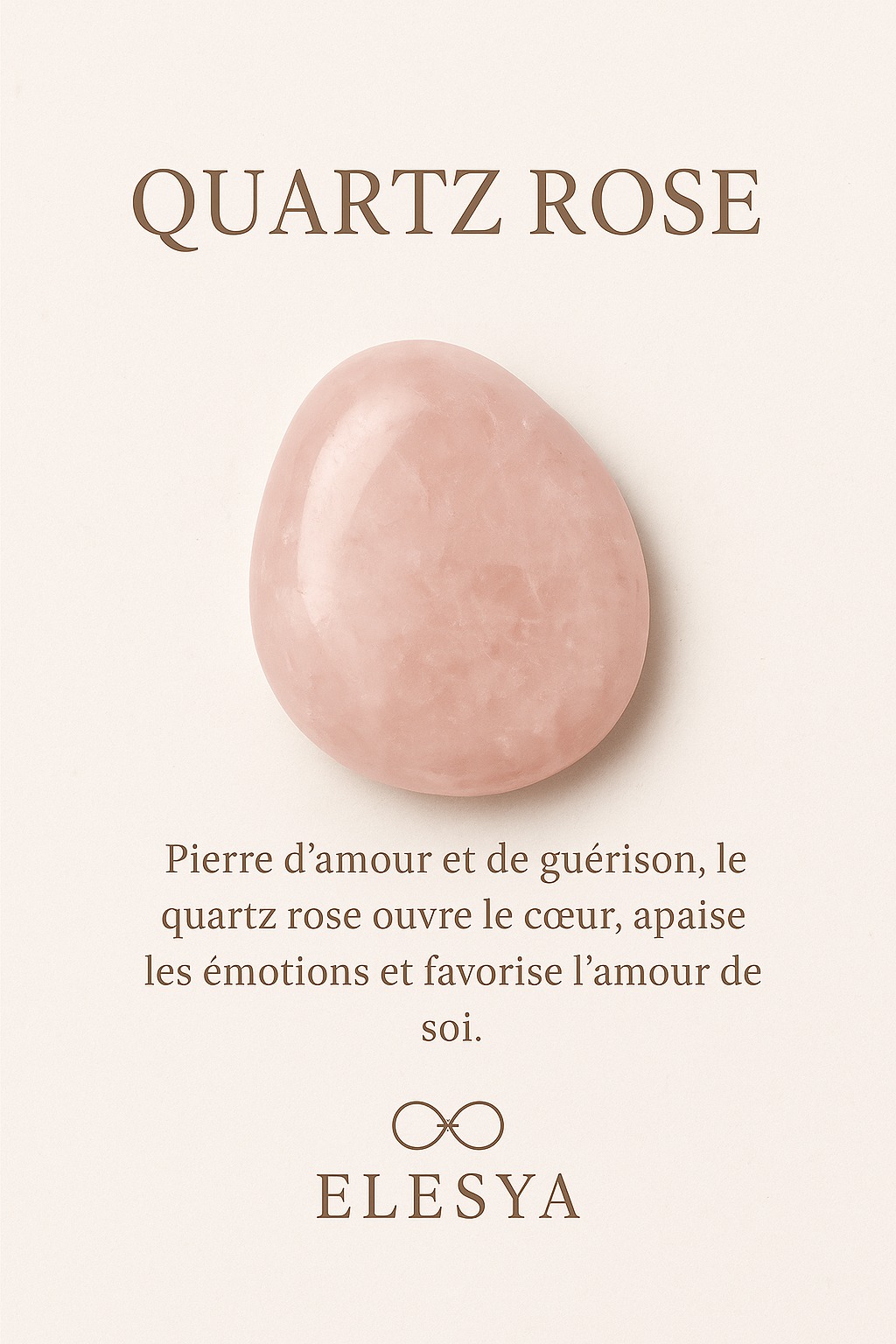 collier en acier poli, orné d’un quartz rose. Mesure 50 cm. Fourni avec pochette